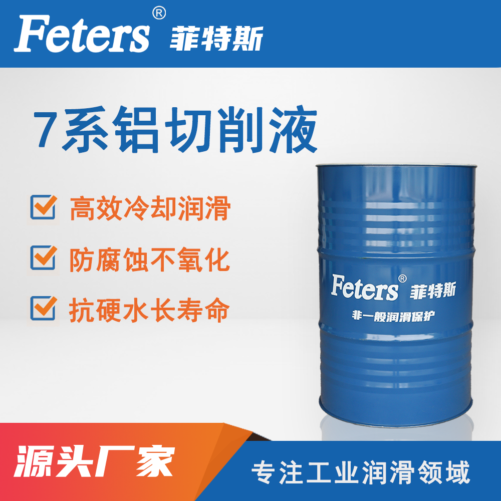 菲特斯7系铝切削液采用了高效的铝合金腐蚀抑制剂,用于敏感7系铝的切削,能有效阻止7系铝表面变色、生斑等腐蚀现象。具有良好的稳定性、润滑性和防锈性。不含亚硝酸盐和酚类等有害成分。