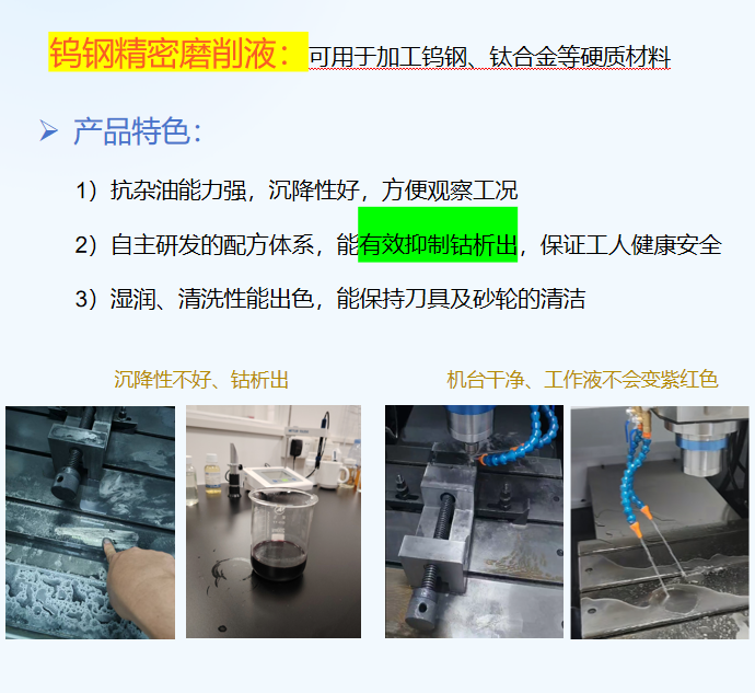 3、出色的润滑和极压特征,有效提高刀具寿命和工件表面光洁度;