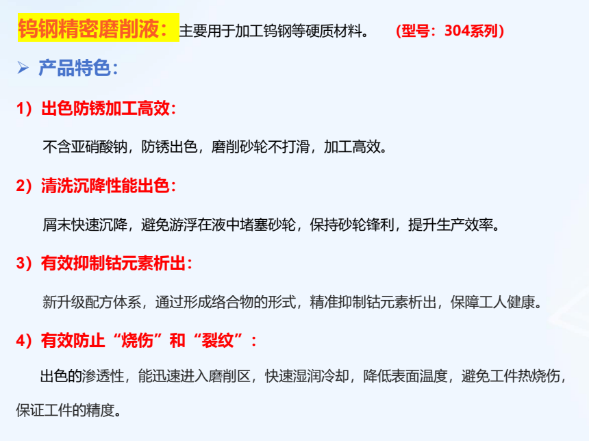 1、优秀的防锈性、良好的冲洗和冷却性能;